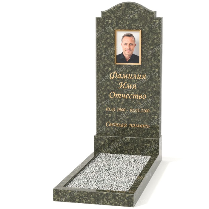 На фото представлены классические варианты оформления памятников. При оформлении договора можно выбрать любой из вариантов нанесения портрета и текста (в том числе размер портрета, размер текста, тип шрифта, дополнительные рисунки и т.д.).